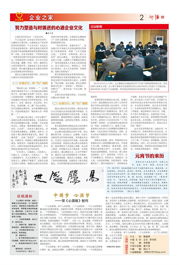 熱烈祝賀心心酒業《心酒報》創刊發行